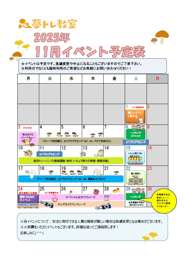 ■2025年夏休みイベント予定表(2025年6月26日更新)